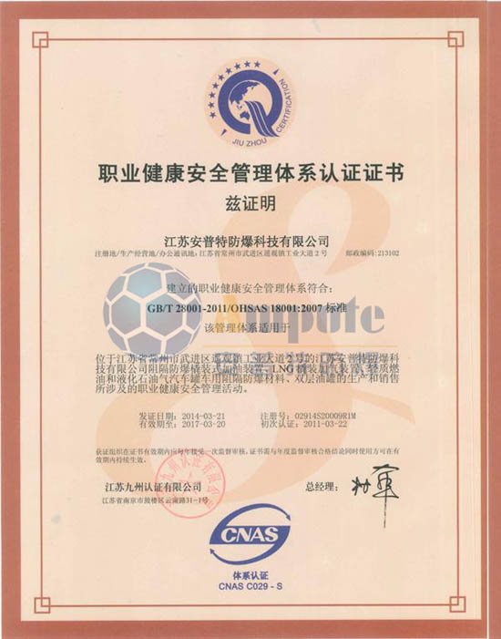 职业健康安全管理认证
